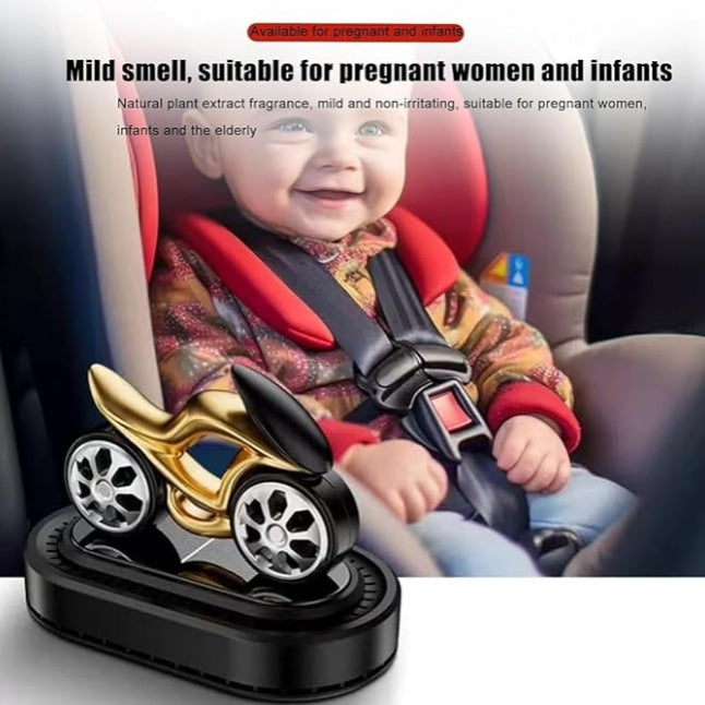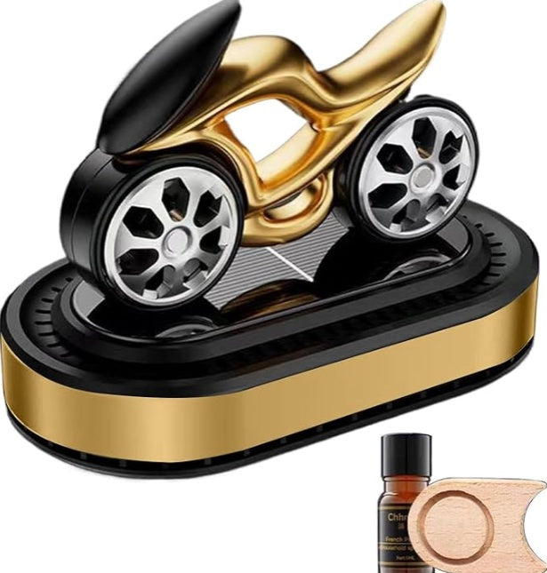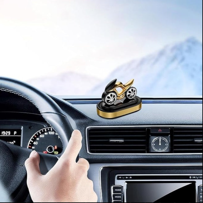 combines a sleek decorative design with refreshing aroma. Powered by solar energy ️, the wheels rotate dynamically while spreading a pleasant fragrance throughout your car . A perfect mix of air freshener + stylish ornament!