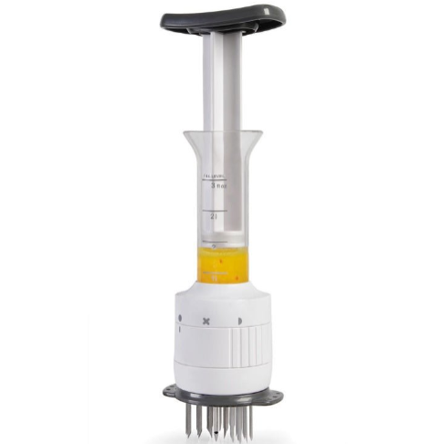 – Combines a needle-style meat tenderizer with a built-in marinade injector.